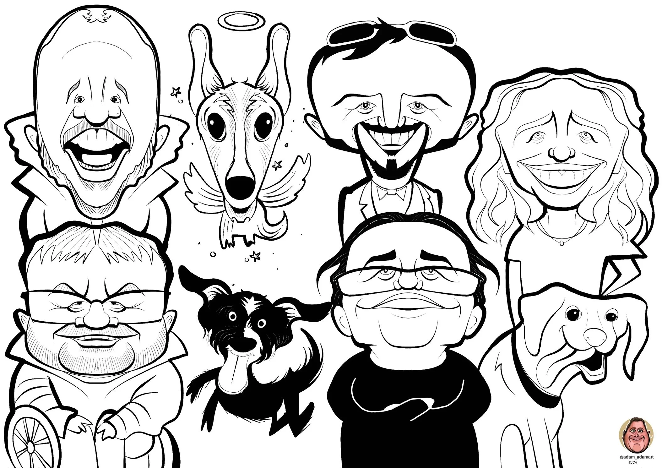 Adam can also draw at corporate events, create team colour caricatures for Christmas cards or any manner of fun ideas you might have.